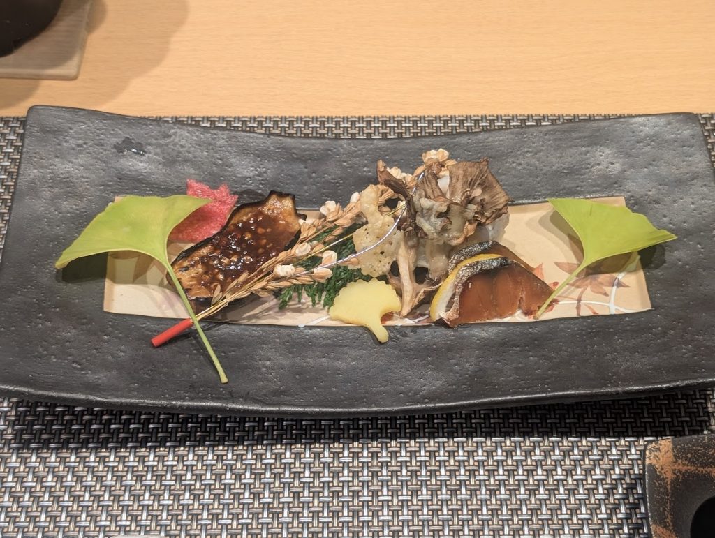 前 菜:笹小鯛棒寿司・炙りへしこレモン挟み・舞茸チーズ・鮎甘露煮